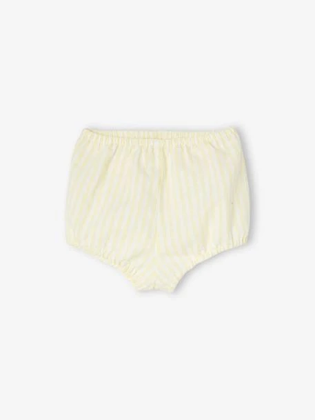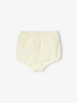Sur un tissu léger en lin et coton, si agréable à porter en été, cet ensemble robe et bloomer est un vrai succès. On aime ses finitions raffinées en broderie anglaise et son bandeau assorti, une belle idée cadeau pour compléter le vestiaire de bébé.