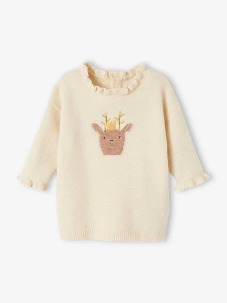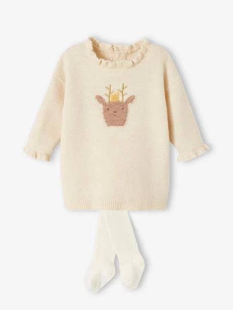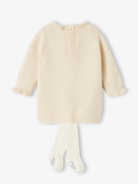 Ensemble 2 pièces bébé : robe en tricot mousseux ultra douce 68% acrylique, 28% polyester, 4% élasthanne.