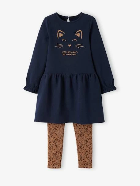 Ensemble fille : Robe en molleton 80% coton, 20% polyester, gratté à l’intérieur