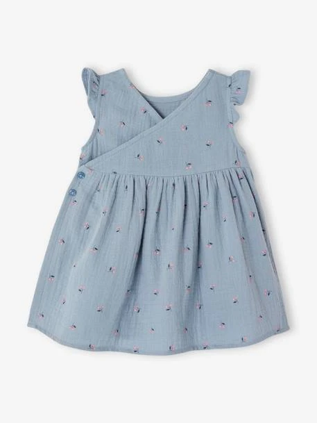 Ensemble robe et bob naissance en gaze 100% coton effet gaufré.