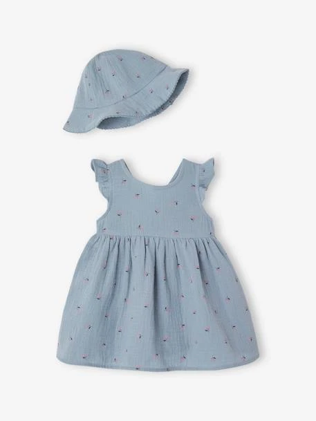 - Ensemble robe et bob naissance en gaze de coton
