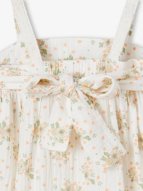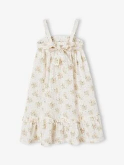 Robe fille en gaze pur coton doublée, effet naturellement gaufré.