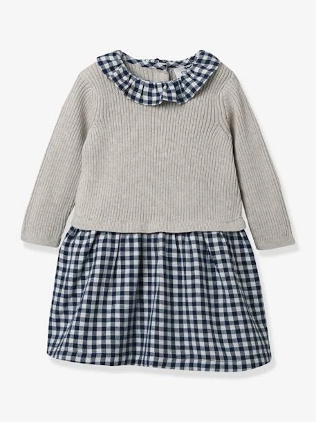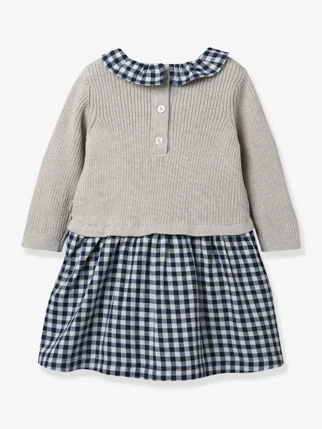 - Haut en tricot 85% coton, 15% laine. Col et jupe en tissu à carreaux tissé teint 100% coton