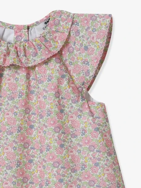Fraîcheur d’un jardin d’été, un bel imprimé délicatement coloré pour illuminer le vestiaire de bébé. Pour sa réalisation, nos stylistes ont choisi le tissu Liberty Betsy Ann.