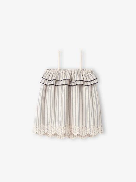 Une jolie robe rayée pour mettre le cap sur l’été ! Rayure graphique, volants charmants, bretelles tresse et fleurs brodées… des détails charmants pour une robe nautique et romantique !