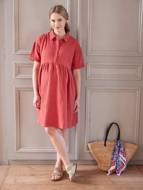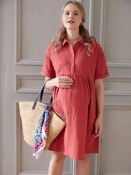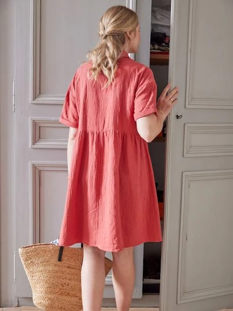 Robe-chemise de grossesse et d’allaitement en gaze de coton brodé