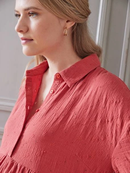 - Robe-chemise future maman gaze de coton broderie anglaise