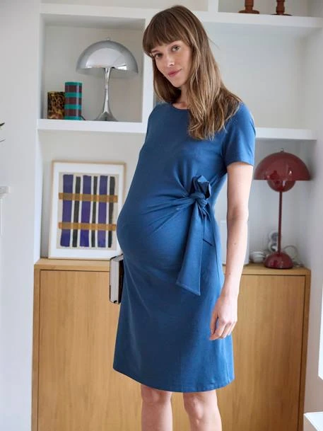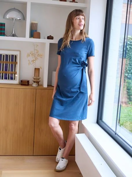 Robe de grossesse et d’allaitement en maille stretch 95% coton, 5% élasthanne.