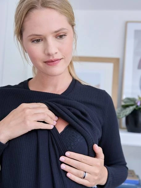 Robe de grossesse et d’allaitement en maille côtelée 100% coton