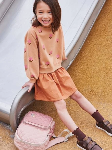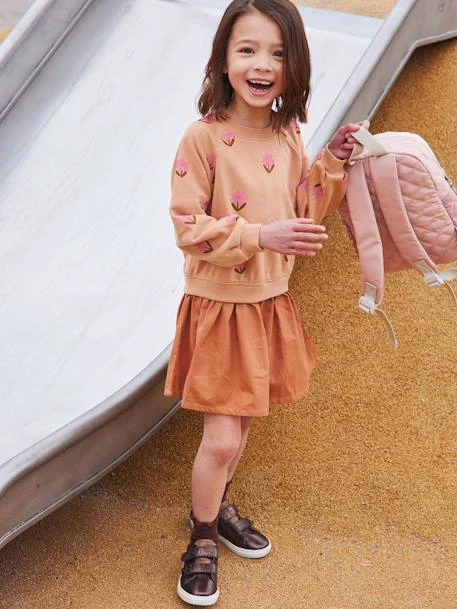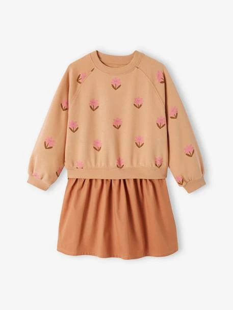 Robe bi-matière fille : haut en molleton 80% coton, 20% polyester.