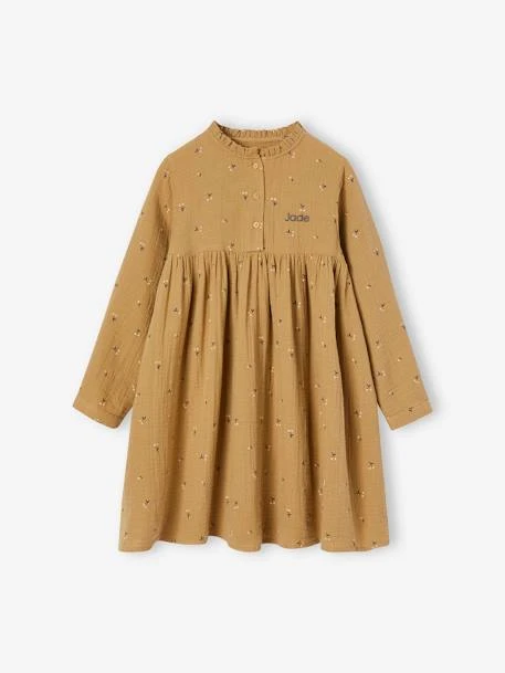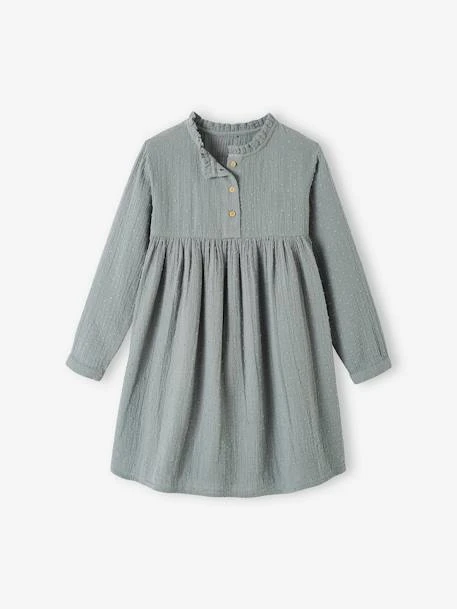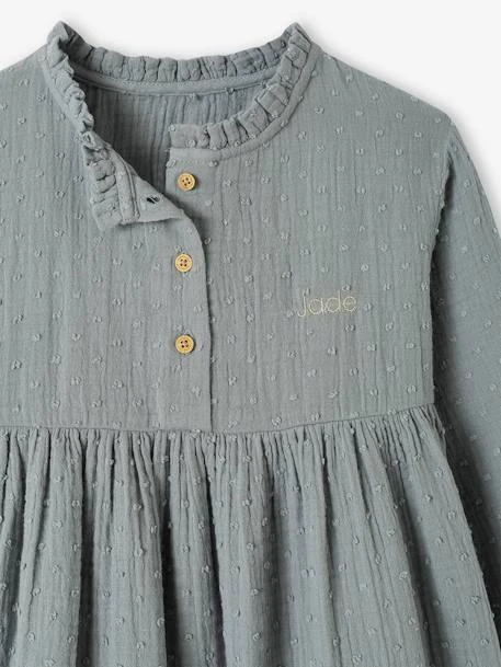 Robe fille en gaze pur coton doublée, matière légère et effet naturellement gaufré.