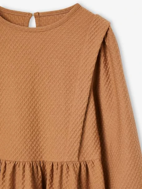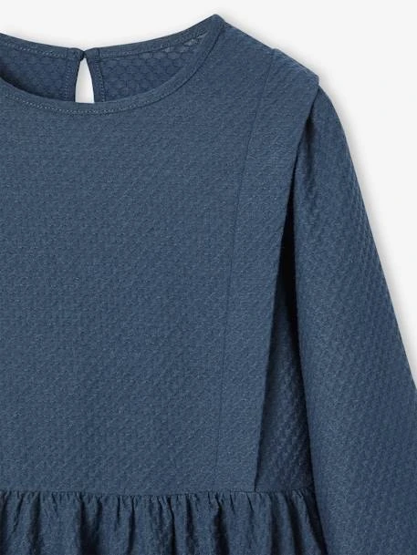 Robe fille en tissu fluide reliéfé 51% polyester, 48% coton, 1% élasthanne.