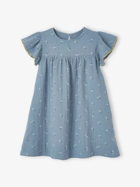 Robe fille : En gaze pur coton doublée, matière légère naturellement gaufrée.