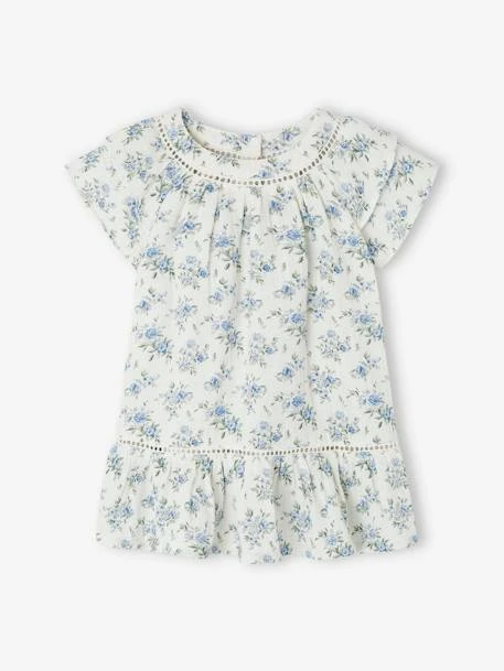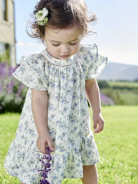 Robe fleurie de cérémonie bébé en gaze 100% coton.