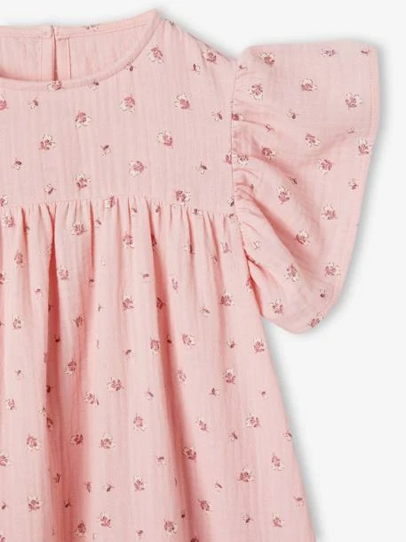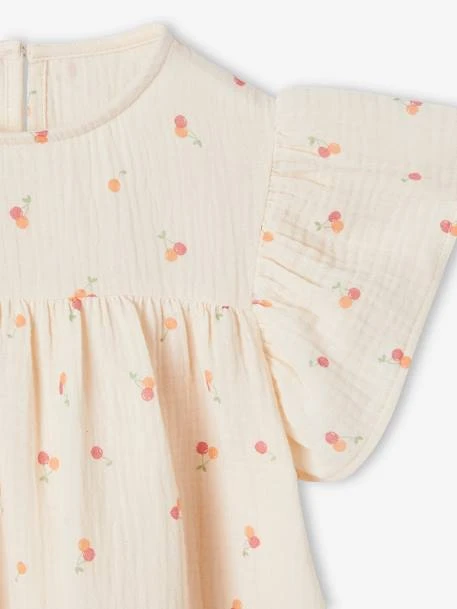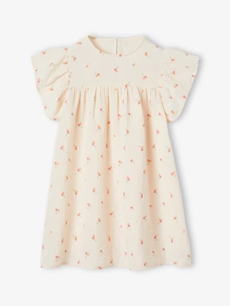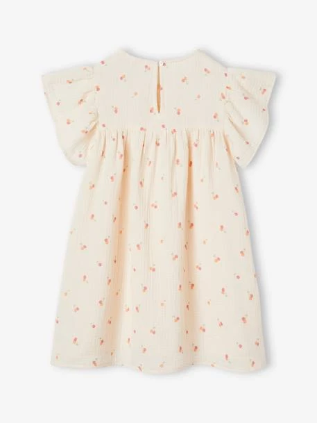 Robe fille : En gaze pur coton, matière légère naturellement gaufrée.