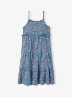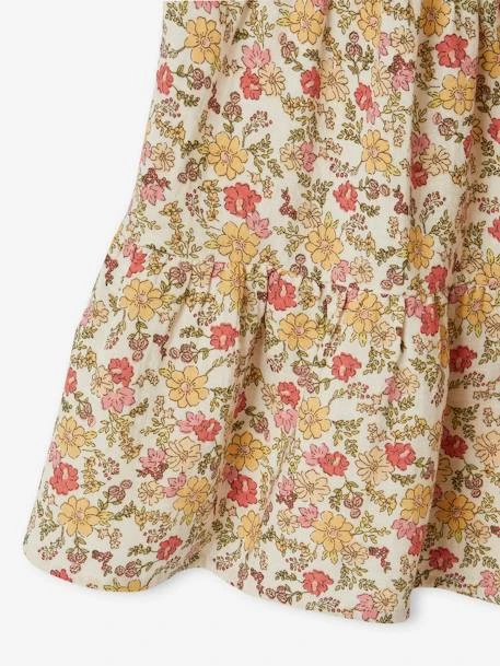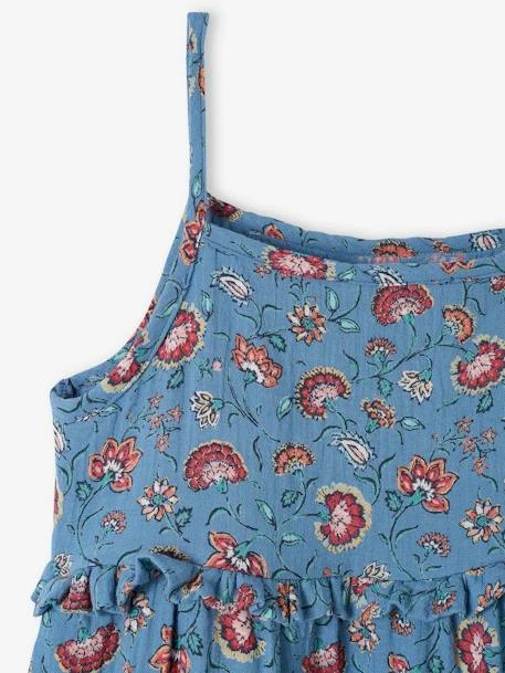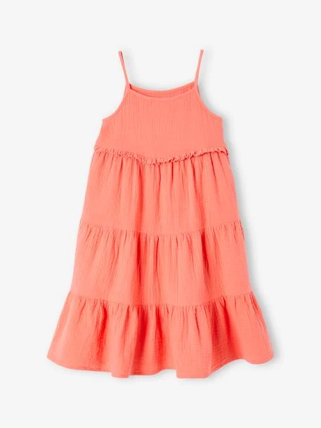 Robe longue fille en gaze 100% coton, matière légèrement gaufrée agréable à porter.
