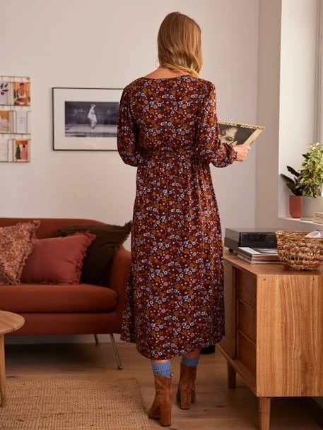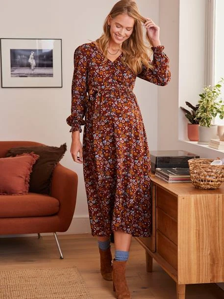 Robe longue de grossesse et d’allaitement en tissu fluide 100% viscose