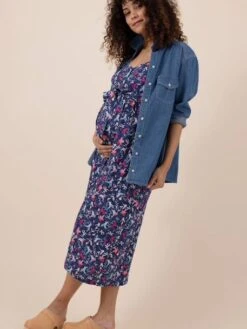 Sublimez vos formes avec cette robe de grossesse Envie de Fraise. Son tissu fleuri léger et fluide apporte tout le confort nécessaire durant 9 mois. La robe longue Cathy a tout pour vous séduire avec sa coupe fluide. Elle vous accompagnera avec charme et même après la grossesse si vous choisissez d’allaiter !