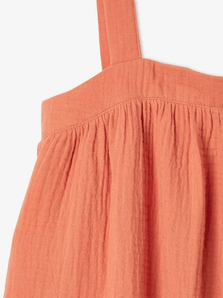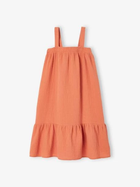Robe longue fille en gaze pur coton, matière légère naturellement froisée.