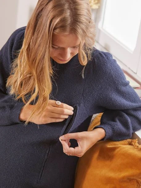Robe-pull de grossesse et d’allaitement en maille 78% acrylique, 20% polyester, 2% élasthanne