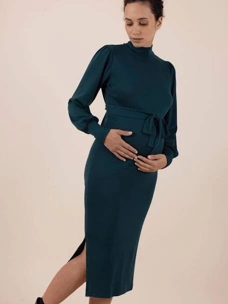 Alliez confort et élégance avec cette jolie robe-pull de grossesse ! On aime le col montant et les manches longues délicatement resserrées aux poignets de notre robe Irina. Sa ceinture au-dessus du ventre mettra parfaitement en valeur votre maternité. Sa fente sur le côté et sa longueur genoux ajoutent quant à eux une touche d’élégance.