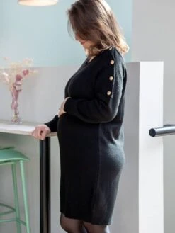Une robe-pull de grossesse confortable du 1er au 9 ème mois. Sa maille toute douce est parfaite pour s’adapter aux rondeurs qui s’installent au fil des mois, sans se déformer. Grâce au boutonnage épaule, vous pourrez par la suite allaiter facilement. Cette robe pull est parfaite même après la naissance.