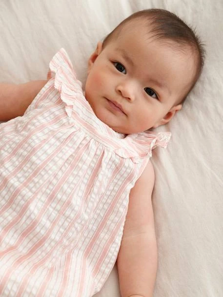 Robe rayée en seersucker naissance 100% coton.